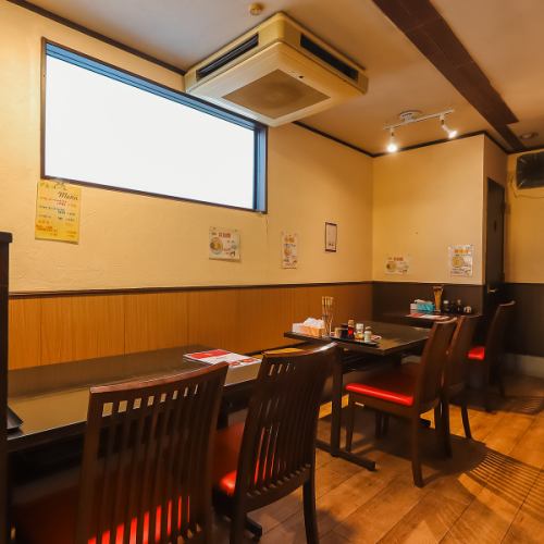 4人掛けテーブルを中心に、人数に応じて柔軟にレイアウト変更が可能。最大12名までのグループ利用にも対応しており、ご近所同士の会食や地域の集まりにもぴったりです。落ち着いた店内は、ゆったりと会話を楽しみながら食事ができる空間。気取らずに集まれる、地元密着の中華食堂です。